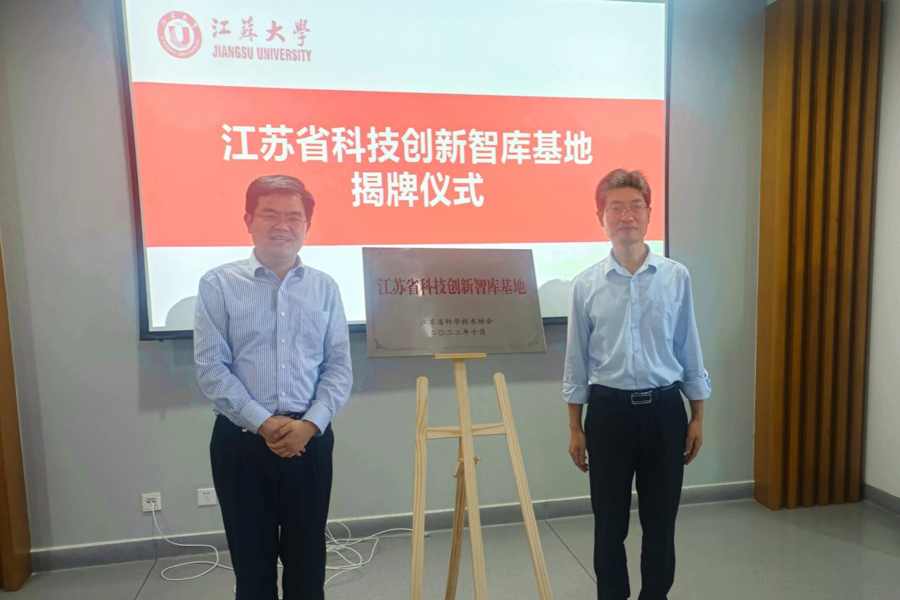 仪式上,李洪波和杨冬生为我校江苏省科技创新智库基地揭牌。