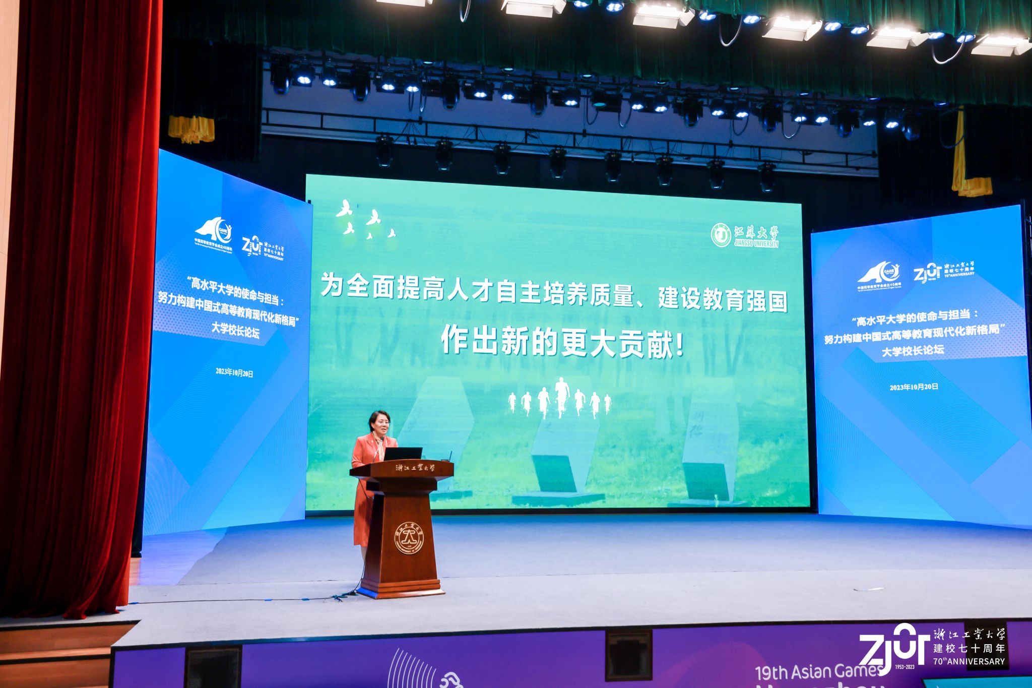10月20日,“高水平大学的使命与担当:努力构建中国式高等教育现代化新格局”大学校长论坛在浙江工业大学举办。论坛旨在更好地探索高等教育发展规律,创新高水平大学建设路径,提升服务经济社会发展水平。校长邢卫红出席论坛并作报告。
