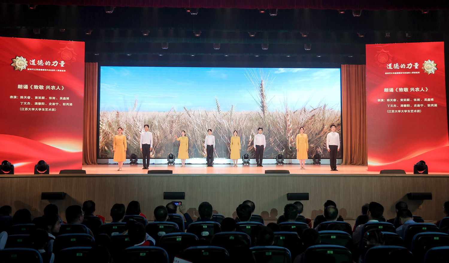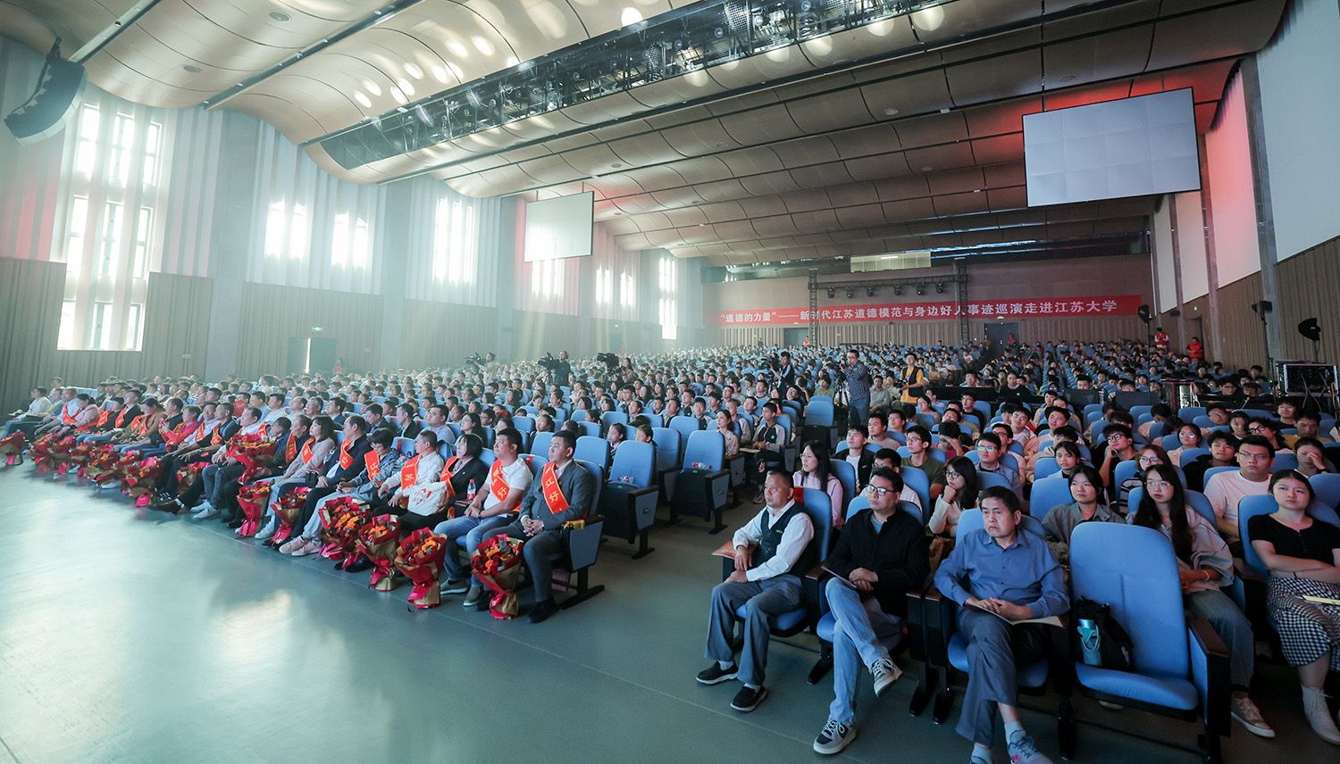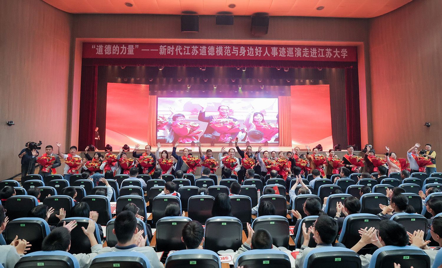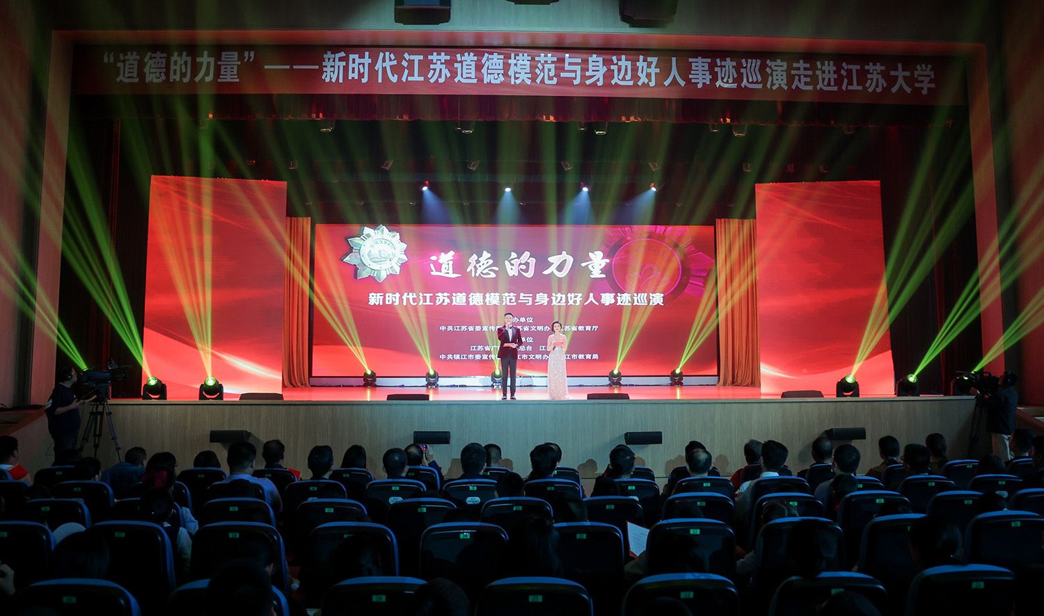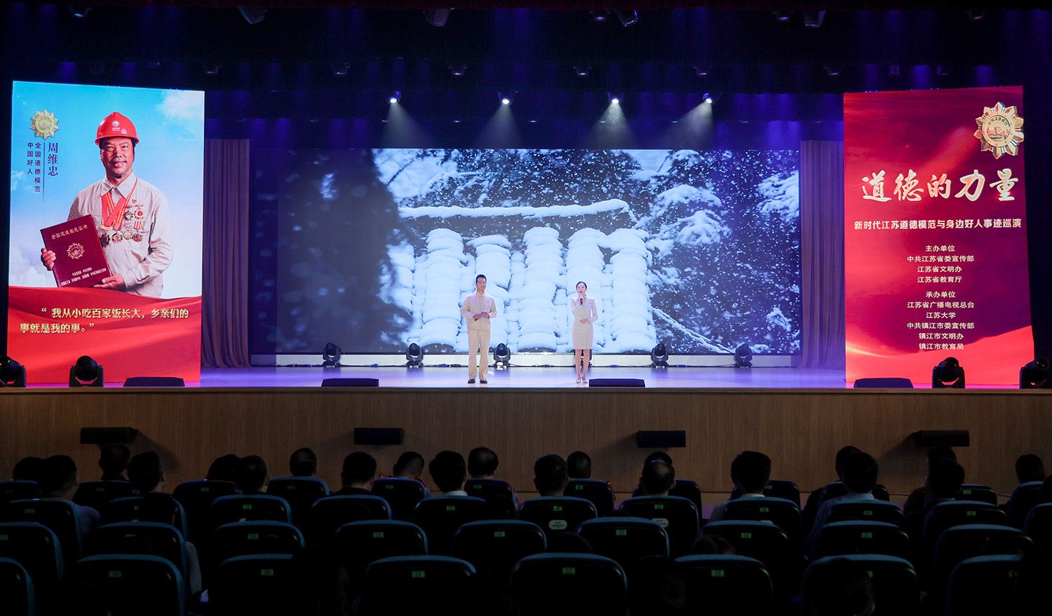 10月25日,由中共江苏省委宣传部、江苏省文明办、江苏省教育厅主办,江苏省广播电视总台、开云「中国」Kaiyun·官方网站、中共镇江市委宣传部、镇江市文明办、镇江市教育局承办的“道德的力量”——新时代江苏道德模范与身边好人事迹高校巡演走进我校。