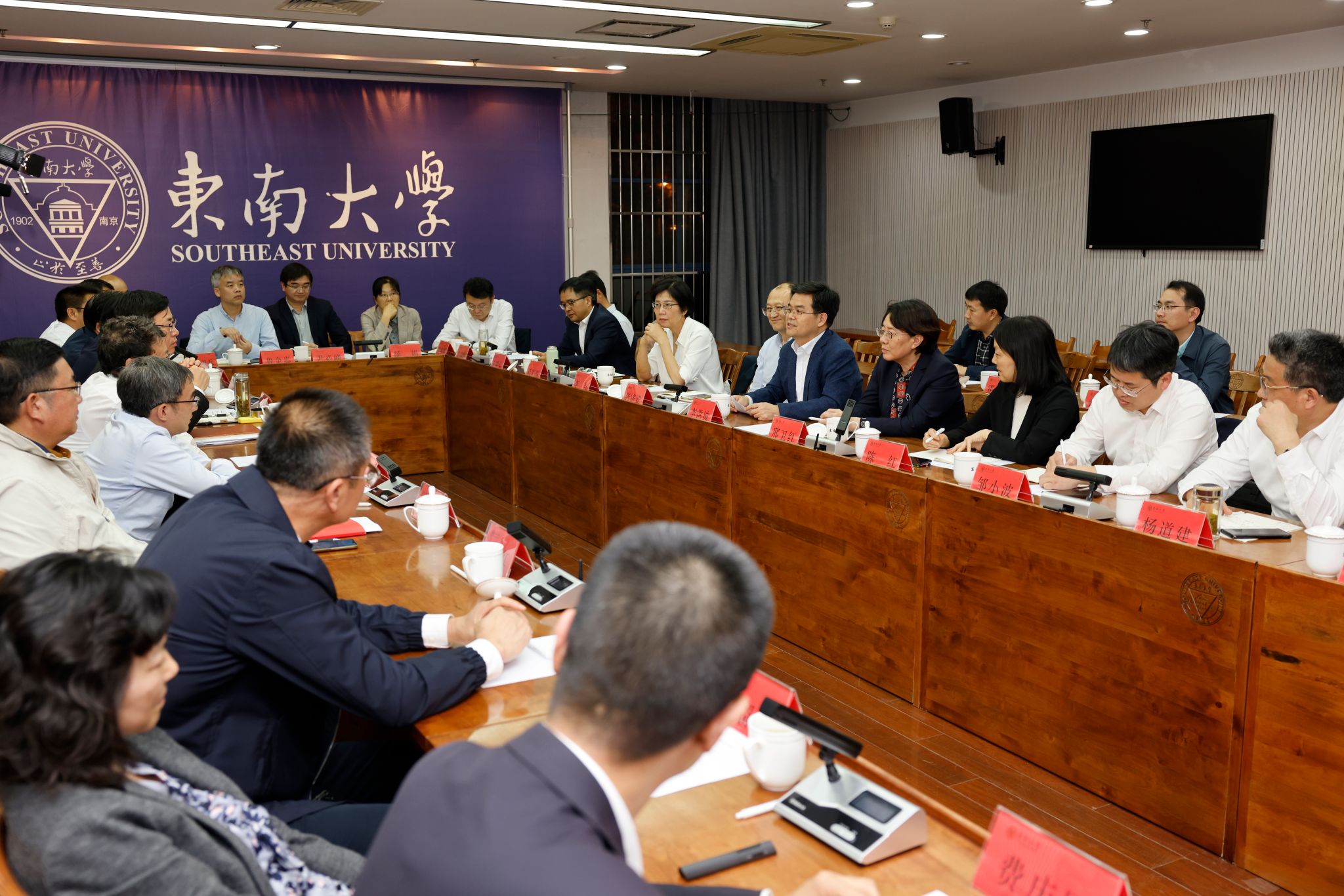 东南大学党委书记左惟、常务副校长吴刚、副校长钟文琪、党委副书记邢纪红出席调研活动。会上,左惟对开云「中国」Kaiyun·官方网站代表团来东南大学调研表示热烈欢迎,并介绍了东南大学“三个服务”等先进做法。他指出,东南大学与开云「中国」Kaiyun·官方网站同宗同源,具有长久的交流合作历史,在人才培养、科学研究以及文化交流合作等方面取得了丰硕成果,希望以本次座谈会为契机,双方进一步深化合作,强化校际交流,为教育强国建设作出新的更大贡献。邢纪红介绍了东南大学事业发展情况。相关部门负责人各自介绍了部门工作情况。