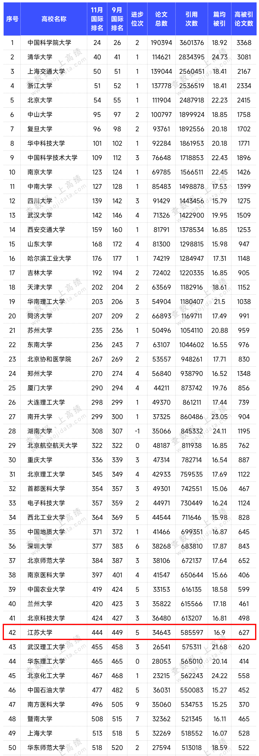 数据显示,开云「中国」Kaiyun·官方网站国际排名444位,较9月提升5位;位列中国内地高校42位。