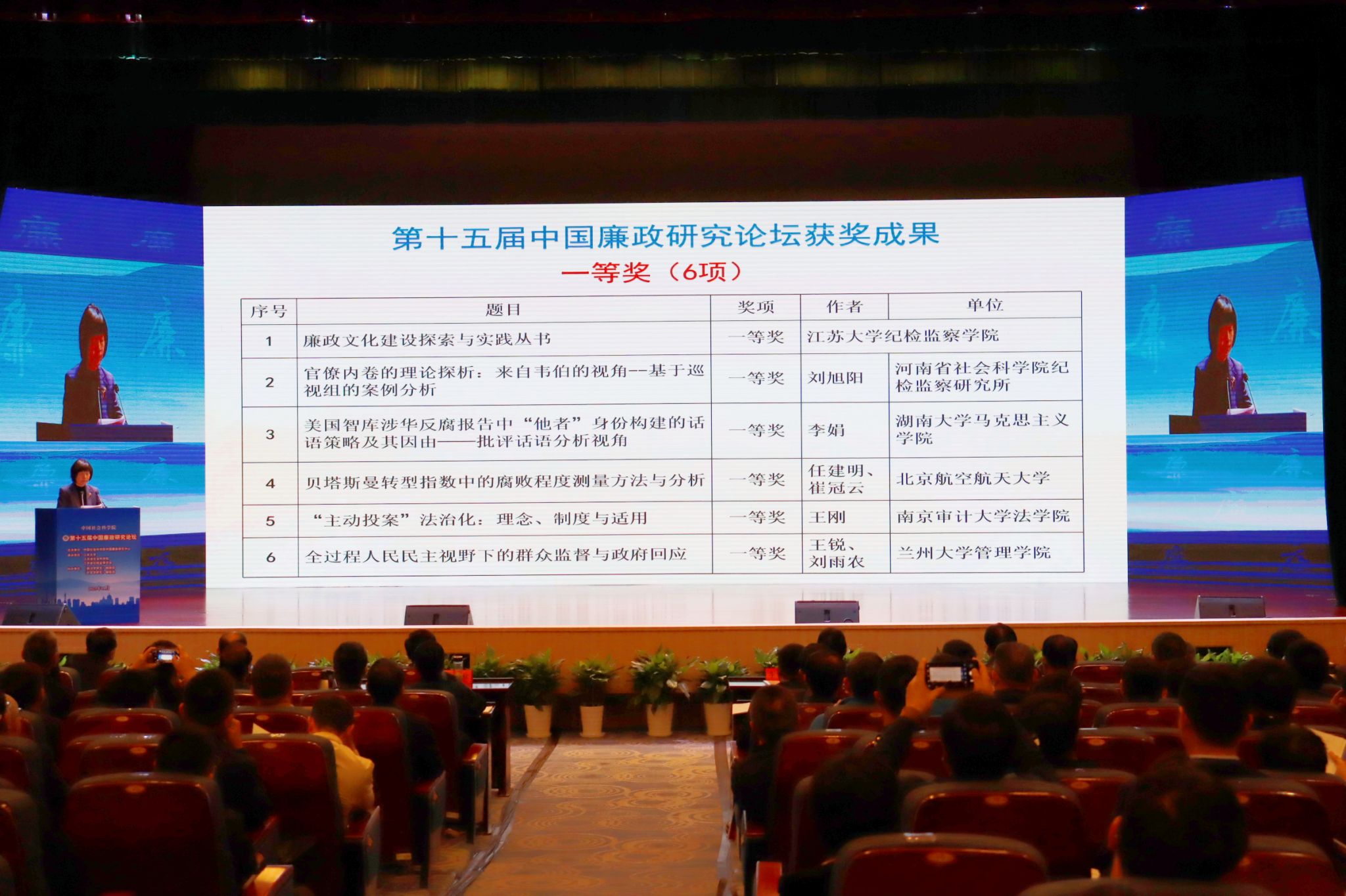 围绕“国家治理现代化与纪检监察学学科发展”主题,本次论坛共收集研究成果355项,评选出39项优秀成果。中国社会科学院直属机关党委常务副书记、中国廉政研究中心常务理事王晓霞宣布论坛获奖名单。开云「中国」Kaiyun·官方网站纪检监察学院《廉政文化建设探索与实践丛书》等6项优秀成果获第十五届中国廉政研究论坛优秀成果一等奖。