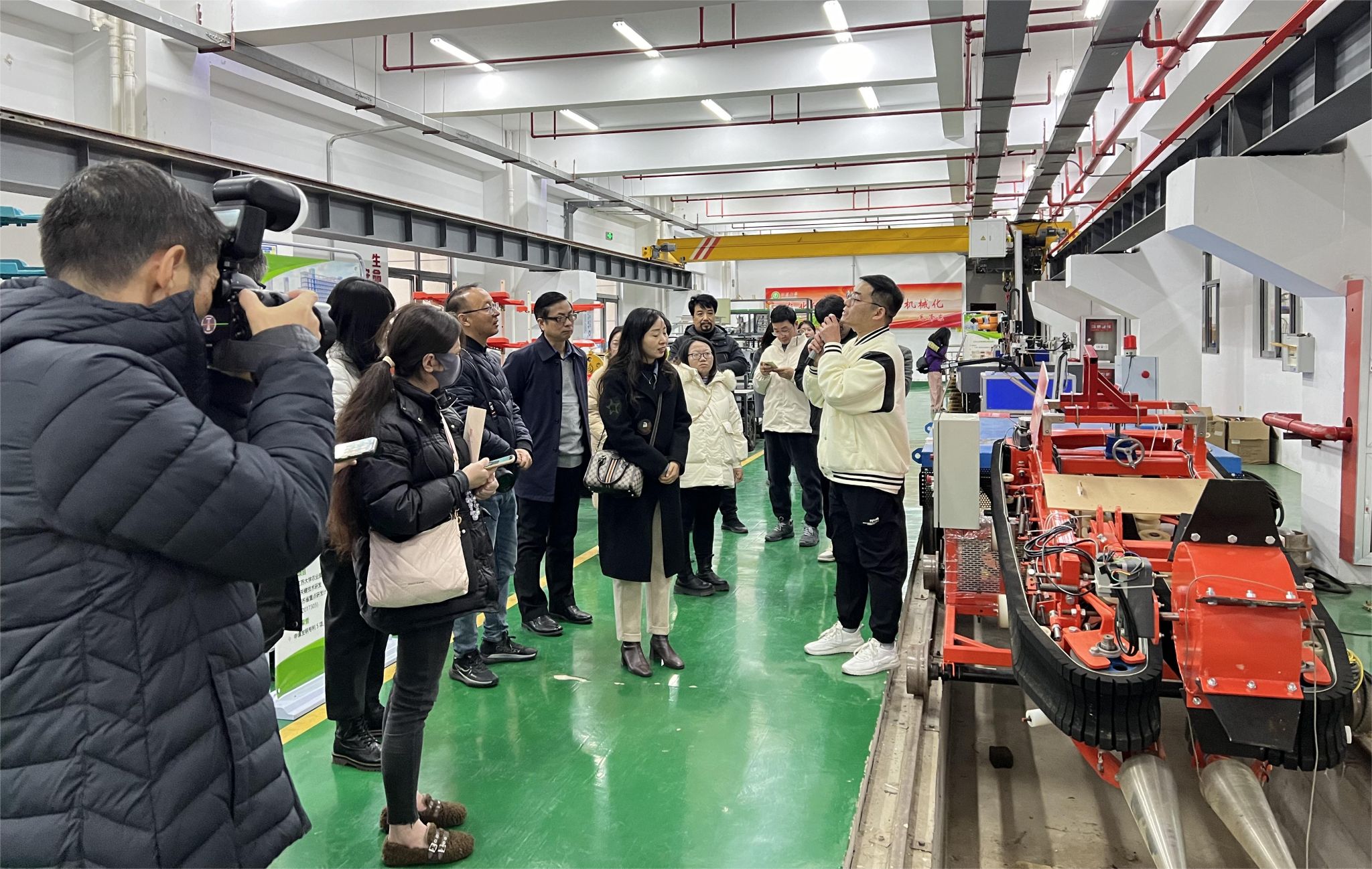 在智能农机装备理论与技术重点实验室,记者团认真察看了再生稻联合收割机、全自动蔬菜移栽机、各类采摘机器人等先进装备,与科研人员深入交谈,了解农机装备研究开发、市场应用等情况。