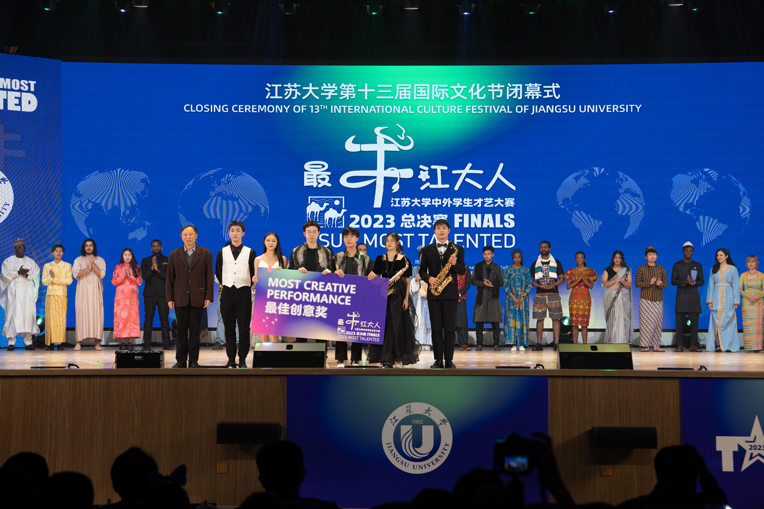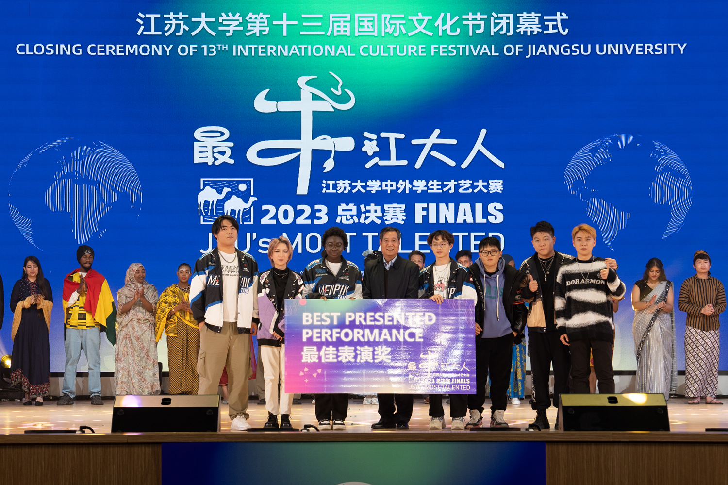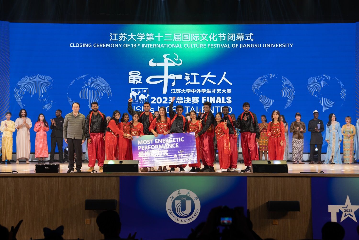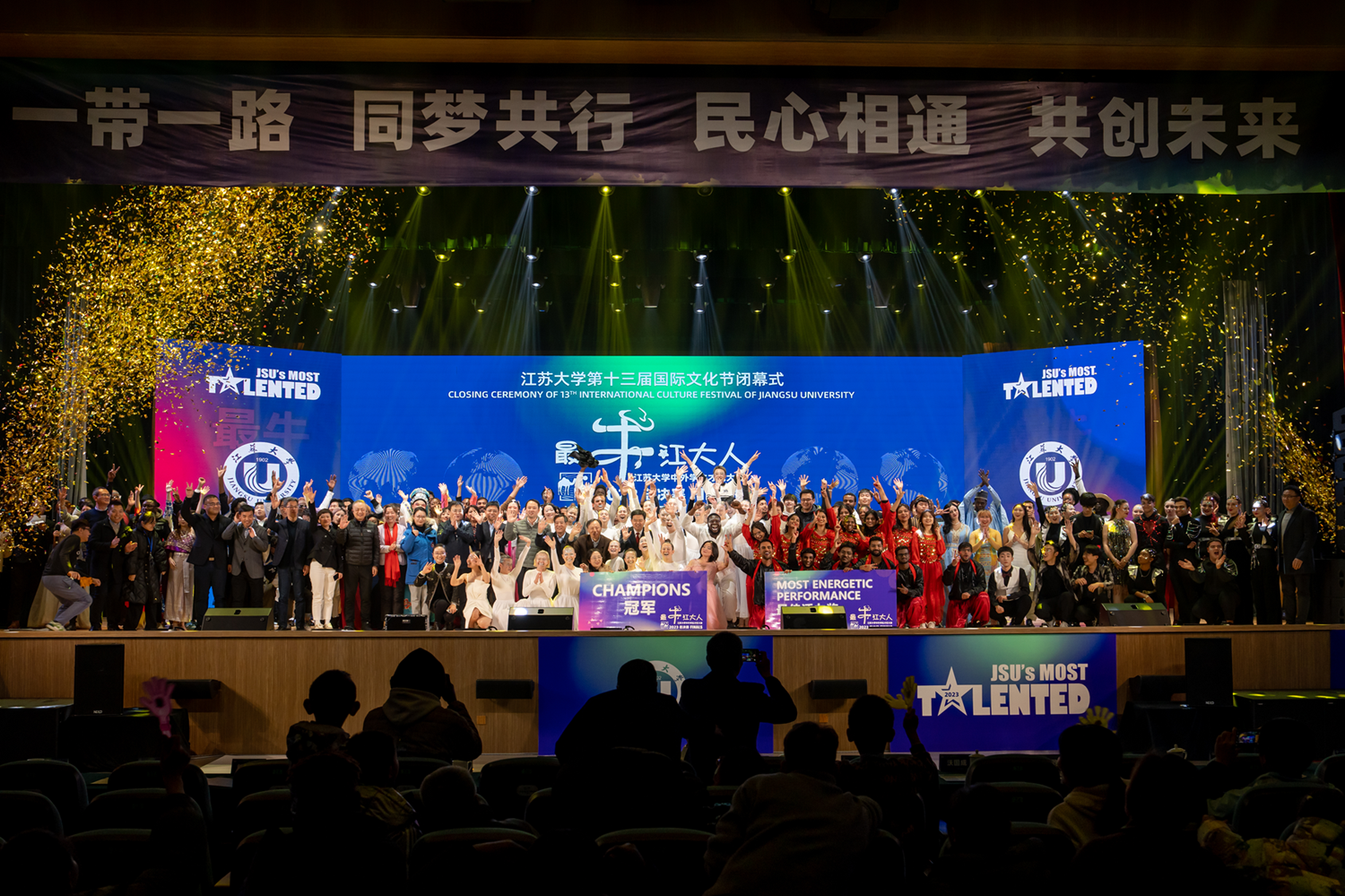12月16日,第十三届国际文化节闭幕式暨2023“最牛江大人”中外学生才艺大赛总决赛在大礼堂举行。来自世界各地、五湖四海的1600余名中外师生欢聚一堂,庆祝共建“一带一路”倡议十周年,共享文化交融盛会。总决赛由校党委宣传部、团委、海外教育学院联合主办。