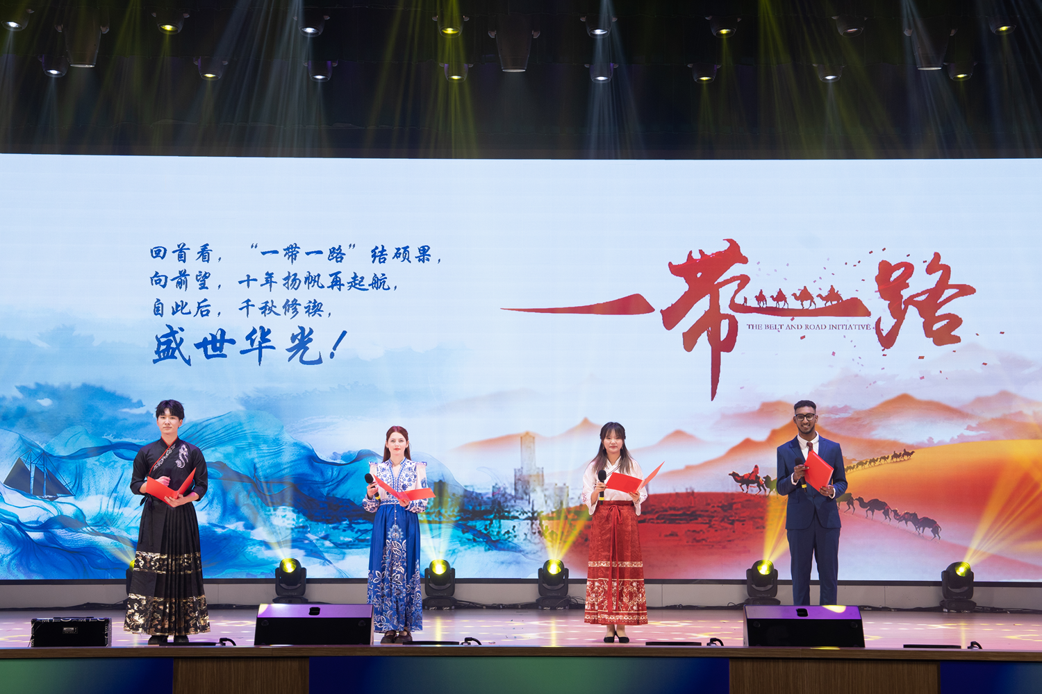 中外学生朗诵《一带繁华一路歌》,献礼共建“一带一路”倡议十周年。