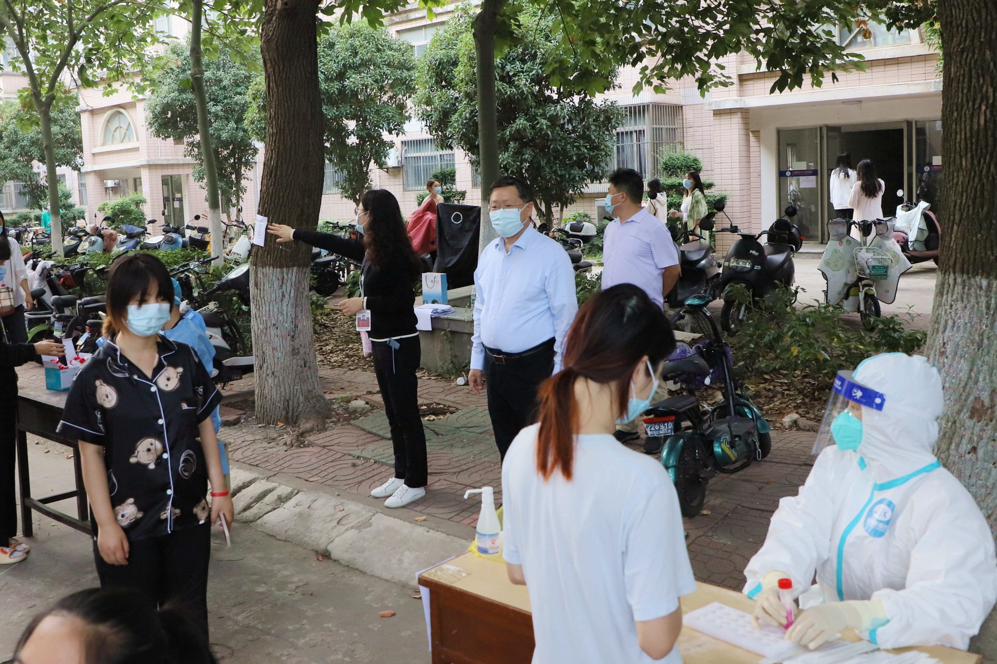 校领导采取“四不两直”的方式,督导检查全员核酸检测工作。