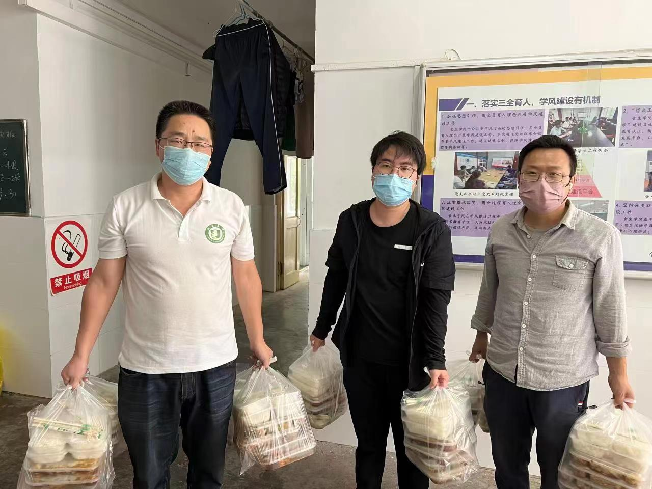 除了刘晨曦,学院教师杨志贤、侯永涛、黄娟和季晨也在校园静默状态下贡献着自己的力量。4位老师尽管每天课务繁重,仍然坚持为有轨迹交叉不能离开宿舍的同学配送用餐。