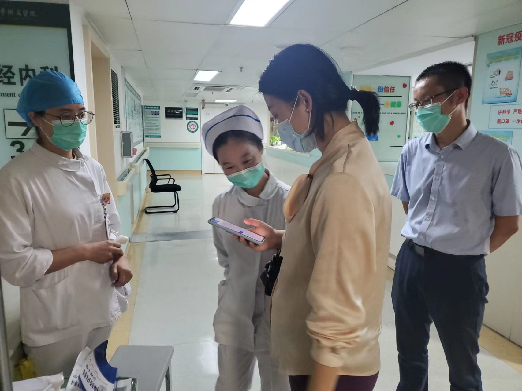 督查组重点检查了医院入口管理、预检分诊、发热门诊(诊室)、临时管控区患者留观和转运处置流程及急诊病人收治等。通过核酸检测实验室监控画面,督查组认真查看核酸检测人员工作流程及防护情况。在神经内科病房,督查组详细查看访客登记记录、患者及陪护核酸检测记录、过渡病房患者收治以及医疗废物和生活垃圾处置等。督查组对附院疫情防控和院感管理各项措施落实情况表示肯定,并就部分流程和点位的优化改进提出了意见和建议。