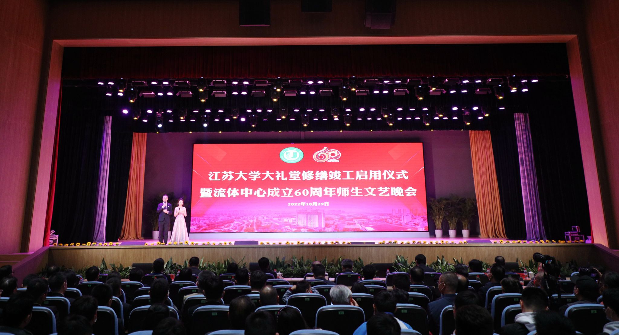 10月29日晚,修葺一新的大礼堂华灯璀璨,座无虚席,气氛热烈庄重,大礼堂修缮竣工启用仪式举行。全体在校校领导参加活动,校外嘉宾通过线上直播的方式云端参会。