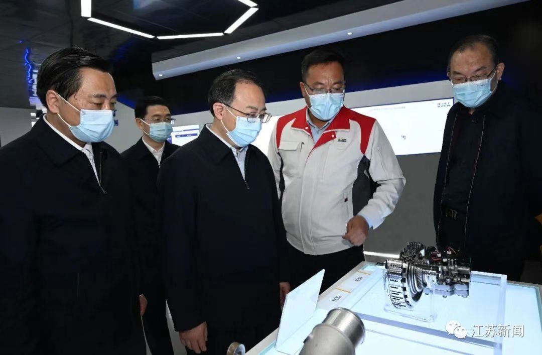 在蜂巢易创产业园,吴政隆了解科技研发和产品主要性能指标等情况,鼓励企业瞄准新能源汽车产业最前沿,集聚高端资源,加强科技创新,努力在激烈的市场竞争中把握主动、赢得未来。