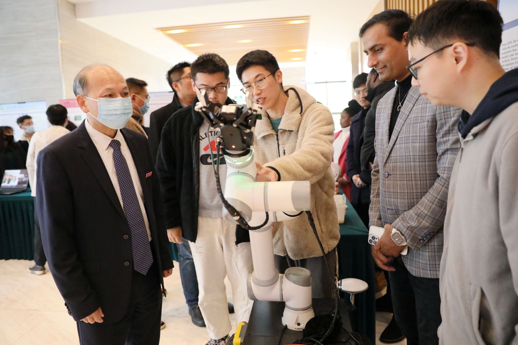 开幕式前,与会领导参观了中外研究生同室创新的最新研究成果。(研究生院)