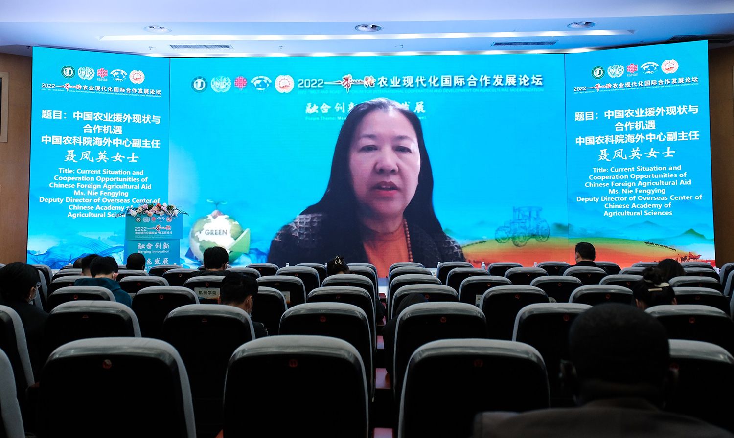 中国农业国际合作促进会会长许国成、中国农业机械工业协会执行副会长赵剡水、中国国际发展知识中心副主任蒋希蘅、中国教育国际交流协会副秘书长安延、中国农业机械化协会副秘书长夏明、中国农业科学院海外中心副主任聂凤英、农业农村部对外经济合作中心国际组织处副处长于浩淼、中国商业股份制企业经济联合会国际文化教育交流促进工作委员会主任邹海、中国国际科技促进会常务理事邢纪国;以及联合国粮农组织驻华代表文康农,联合国粮农组织植物生产与保护司司长夏敬源,联合国工业发展组织农业司司长德耶内·泰泽拉,联合国亚洲及太平洋经济社会委员会战略与项目管理司司长阿德南·阿里亚尼,联合国可持续农业机械化中心副主任安书曼,世界粮食计划署中国办公室南南合作主管贾焰,巴基斯坦国家农业研究委员会主席古兰·穆罕穆德·阿里尼,波黑塞族共和国农林水利部部长鲍里斯·帕沙里奇,莫桑比克教育部前部长、莫桑比克师范大学校长豪尔赫·费劳,尼泊尔跨喜马拉雅友好协会主席拉吉姆·库玛·贾哈,加纳苏尼亚尼能源与自然资源大学校长埃尔维斯·阿萨雷·比迪亚高,波黑塞族共和国巴尼亚卢卡大学副校长米罗斯拉夫·马利诺维奇等国内国际嘉宾线上出席论坛。