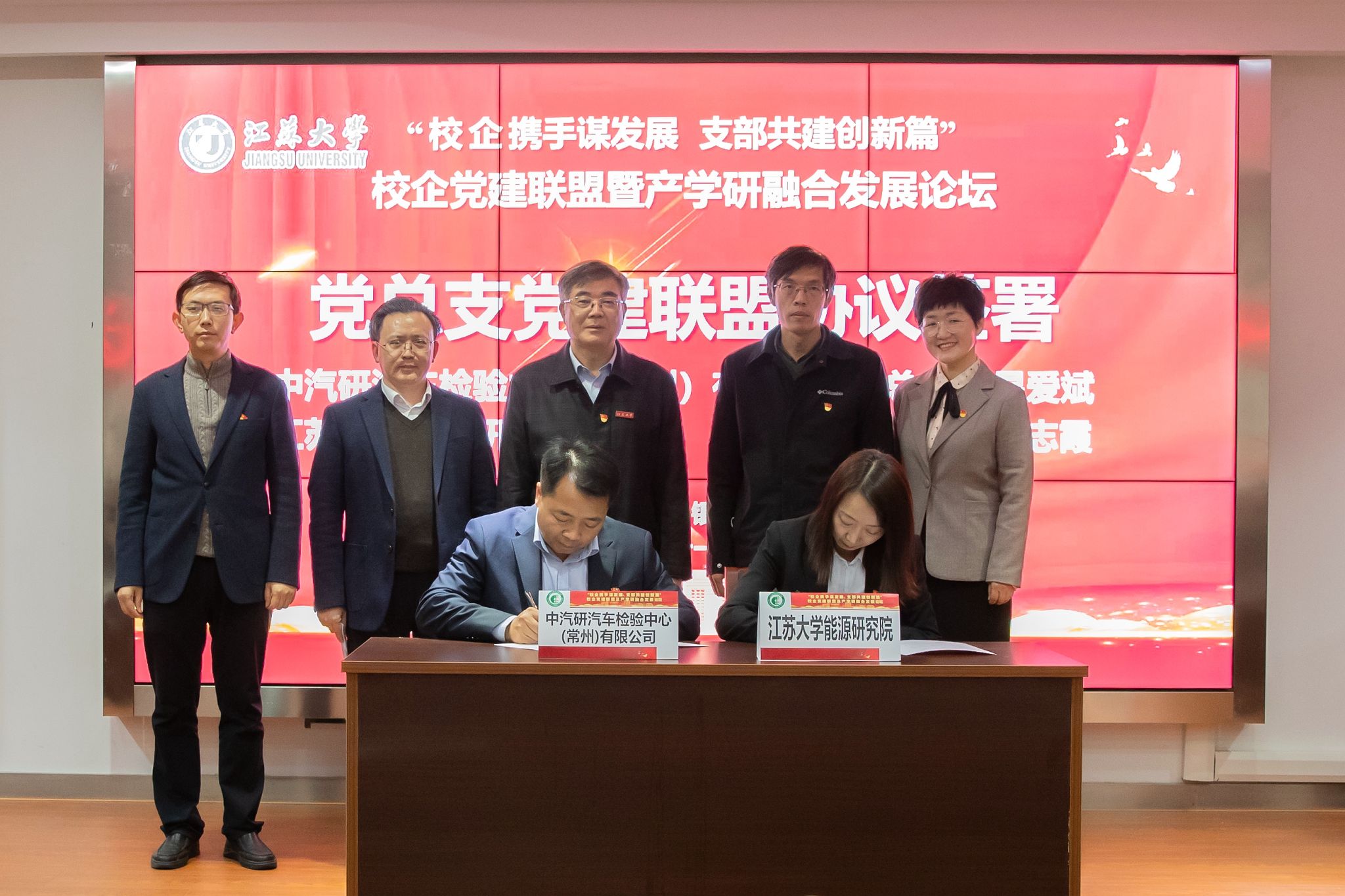 论坛上,能源研究院党总支与中汽研汽车检验中心(常州)有限公司党总支签署了党建联盟共建协议。能源研究院党总支下属三个教工党支部分别和专业对口的企业签署了支部共建协议。