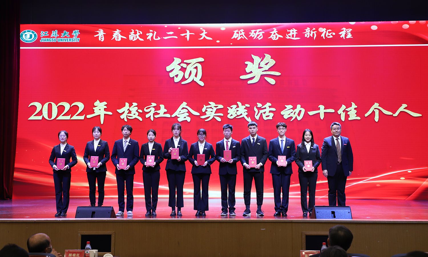 出席大会的领导为受表彰的先进集体和个人颁奖。校党委书记袁寿其为获得第八届中国国际“互联网+”大学生创新创业大赛国赛金奖、银奖团队代表和2022年全国大中专学生志愿者暑期“三下乡”社会实践活动优秀单位颁奖;颜晓红为2021-2022学年“博学”“求是”“明德”校长奖章获得者颁奖;校党委副书记李洪波为2022年度省级三好学生颁奖;校党委常委、纪委书记、派驻监察专员高庆国为2022年度省级优秀学生干部、省级先进班集体颁奖;副校长全力为2021-2022学年校三好标兵、校优秀研究生标兵颁奖;副校长赵玉涛为2022年度校大学生优秀共产党员代表颁奖;副校长李红为2022年度校大学生先进党支部颁奖;校党委常委、组织部部长马志强为2022年校社会实践活动先进单位颁奖;校党委常委、统战部部长杨敬江为2022年校社会实践活动十佳团队颁奖;校党委常委、宣传部部长杨道建为2022年校社会实践活动十佳个人颁奖。