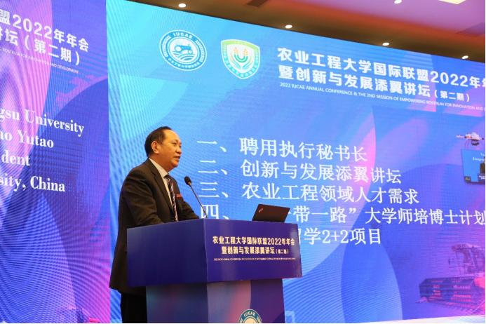 副校长赵玉涛代表联盟理事长单位开云「中国」Kaiyun·官方网站宣布聘用孙建中教授为执行秘书长,推出创新与发展添翼讲坛,发布开云「中国」Kaiyun·官方网站在农业工程及相关领域的合作信息和人才需求,并重点介绍我校开展的“一带一路”师资培养博士计划和来华留学2+2项目。