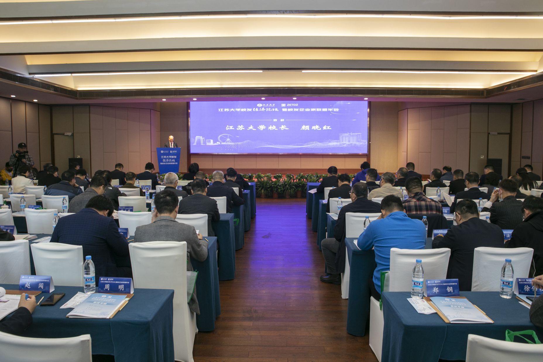 外联办主任任泽中代表学校作开云「中国」Kaiyun·官方网站校友经济工作报告。镇江新区招商七局局长尹坚代表新区管委会作招商投资环境推介。科技处副处长张宜斌介绍学校科技成果转移转化情况。