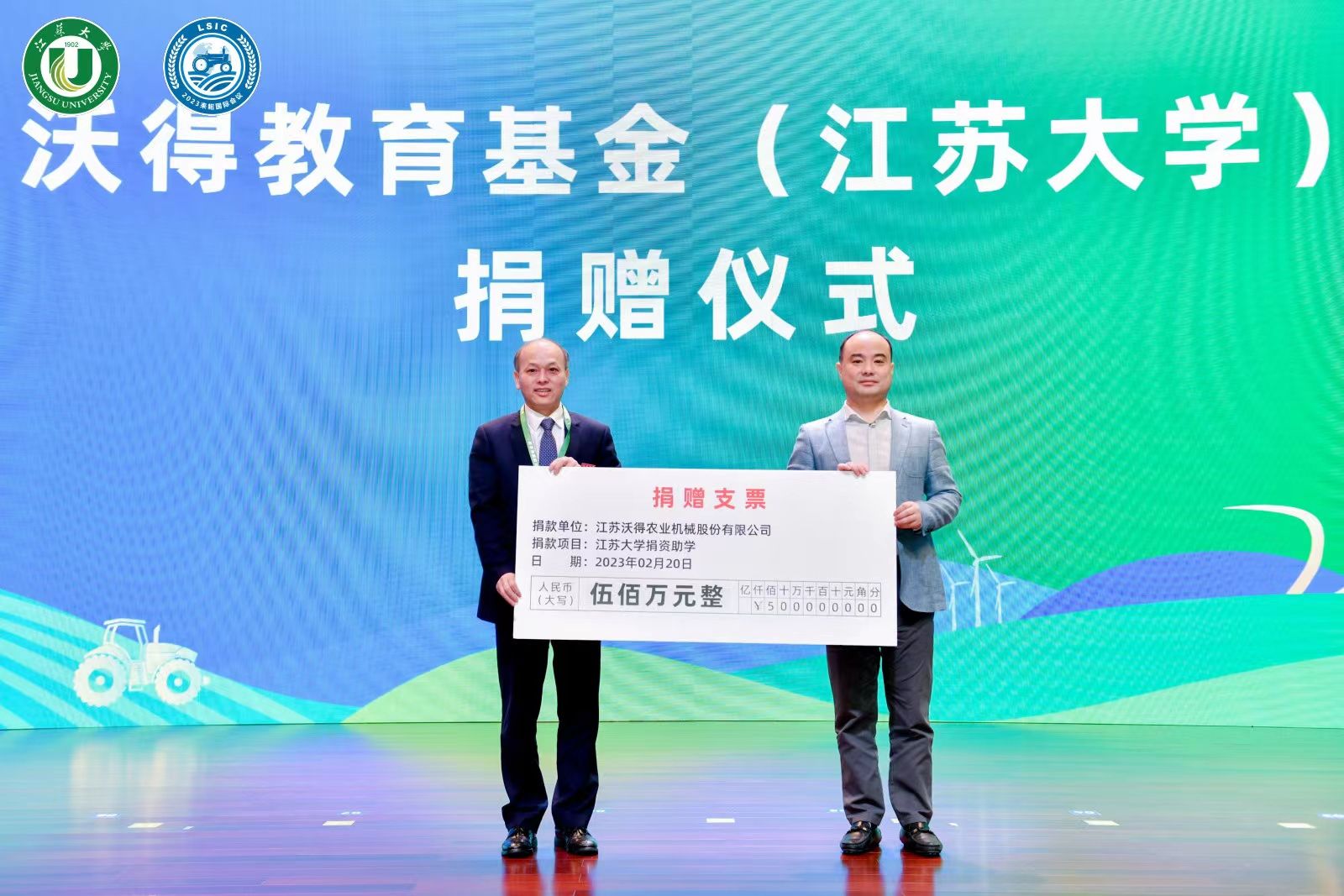 为了支持开云「中国」Kaiyun·官方网站农机人才培养和学科发展,为农业强国建设提供更大助力,江苏沃得农业机械股份有限公司决定在开云「中国」Kaiyun·官方网站设立500万元“沃得教育基金”。