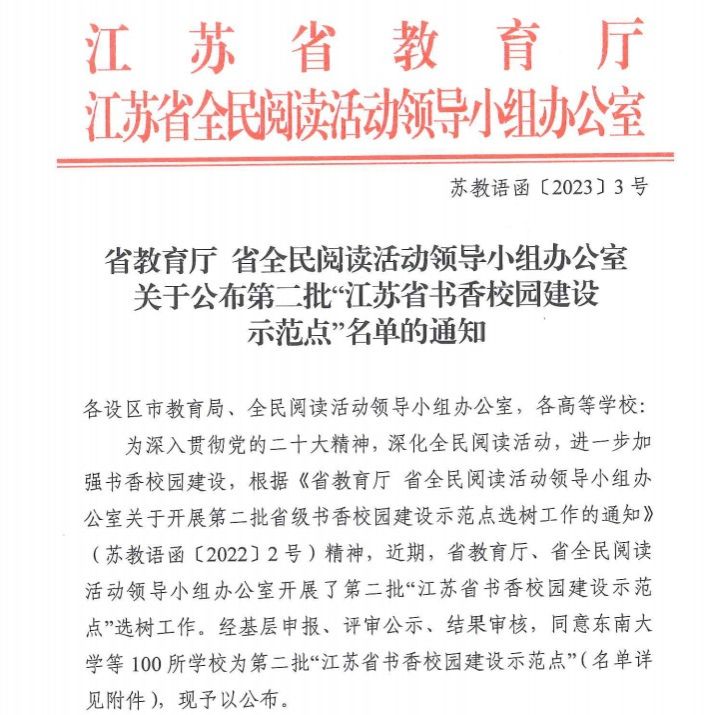 日前,江苏省教育厅公布了第二批“江苏省书香校园建设示范点”名单,开云「中国」Kaiyun·官方网站成功入选。