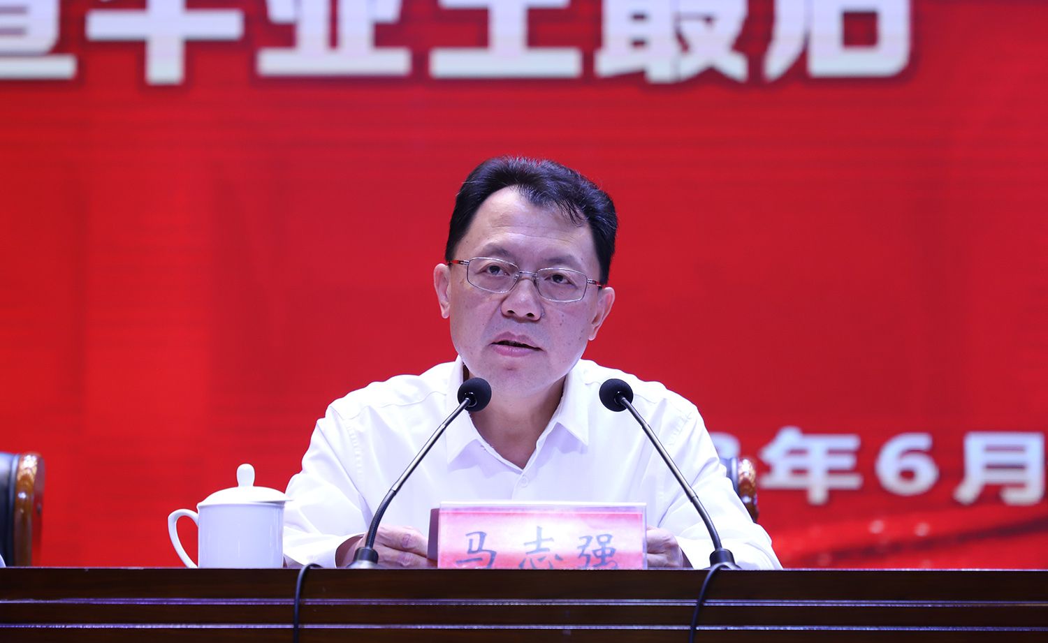 马志强在主持活动时说,全体毕业生党员要牢记誓词,时刻以一名优秀共产党员的标准鞭策自己,传承红色基因,赓续红色血脉,以青春之我创造青春之中国,奏响新时代的青春之歌。
